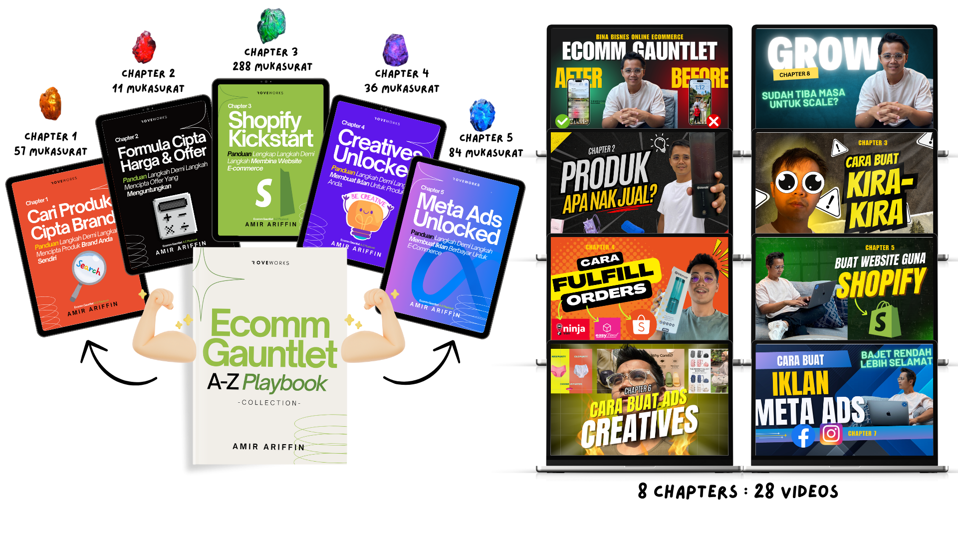Dengan "ECOMM GAUNTLET" ini anda boleh follow dan buat ikut rentak masa anda sendiri. Jadikan sebagai rujukan, guideline dan roadmap untuk anda follow step by step sampai jadi!